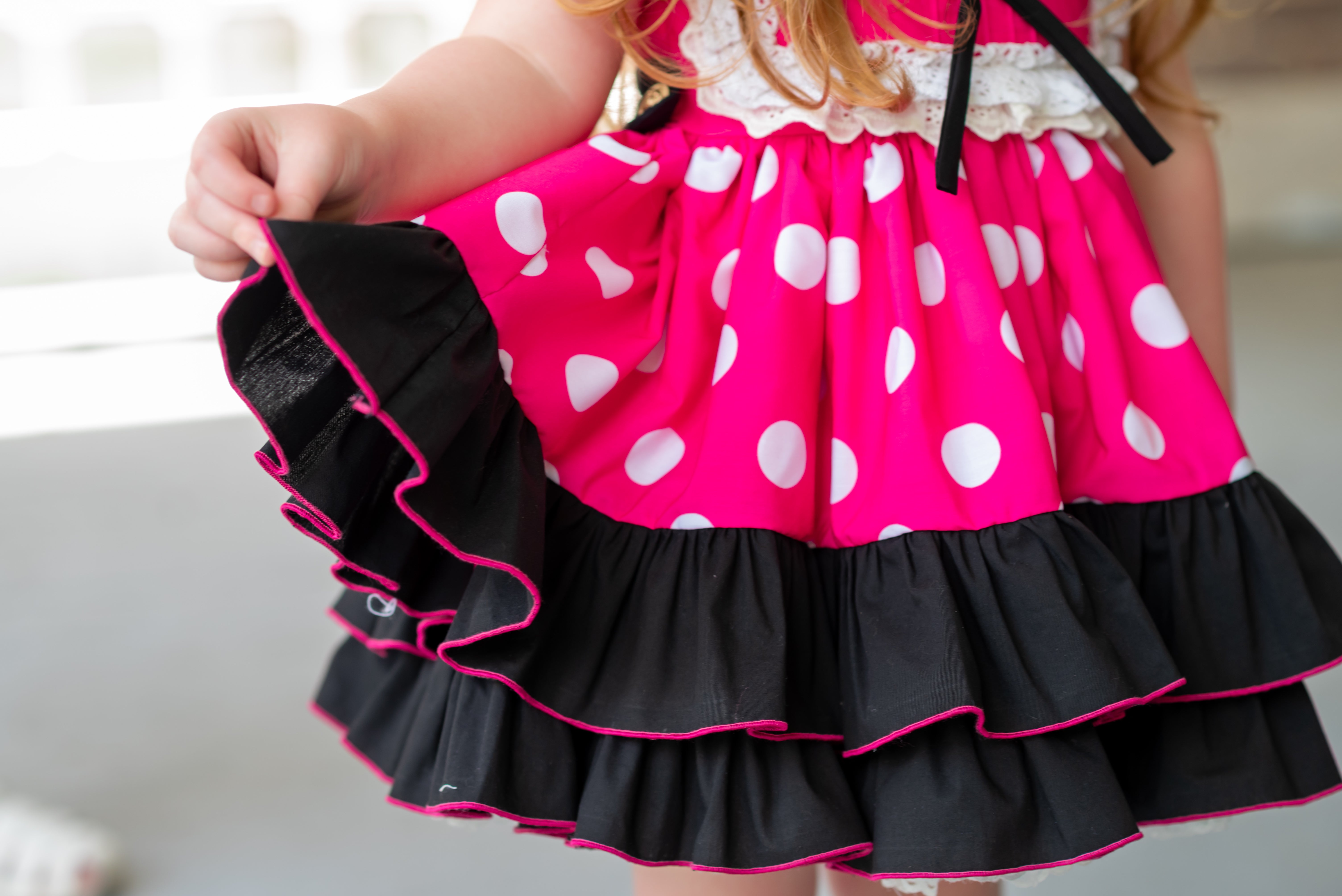 • Gold button accents on waistband and black sash to ensure the perfect fit