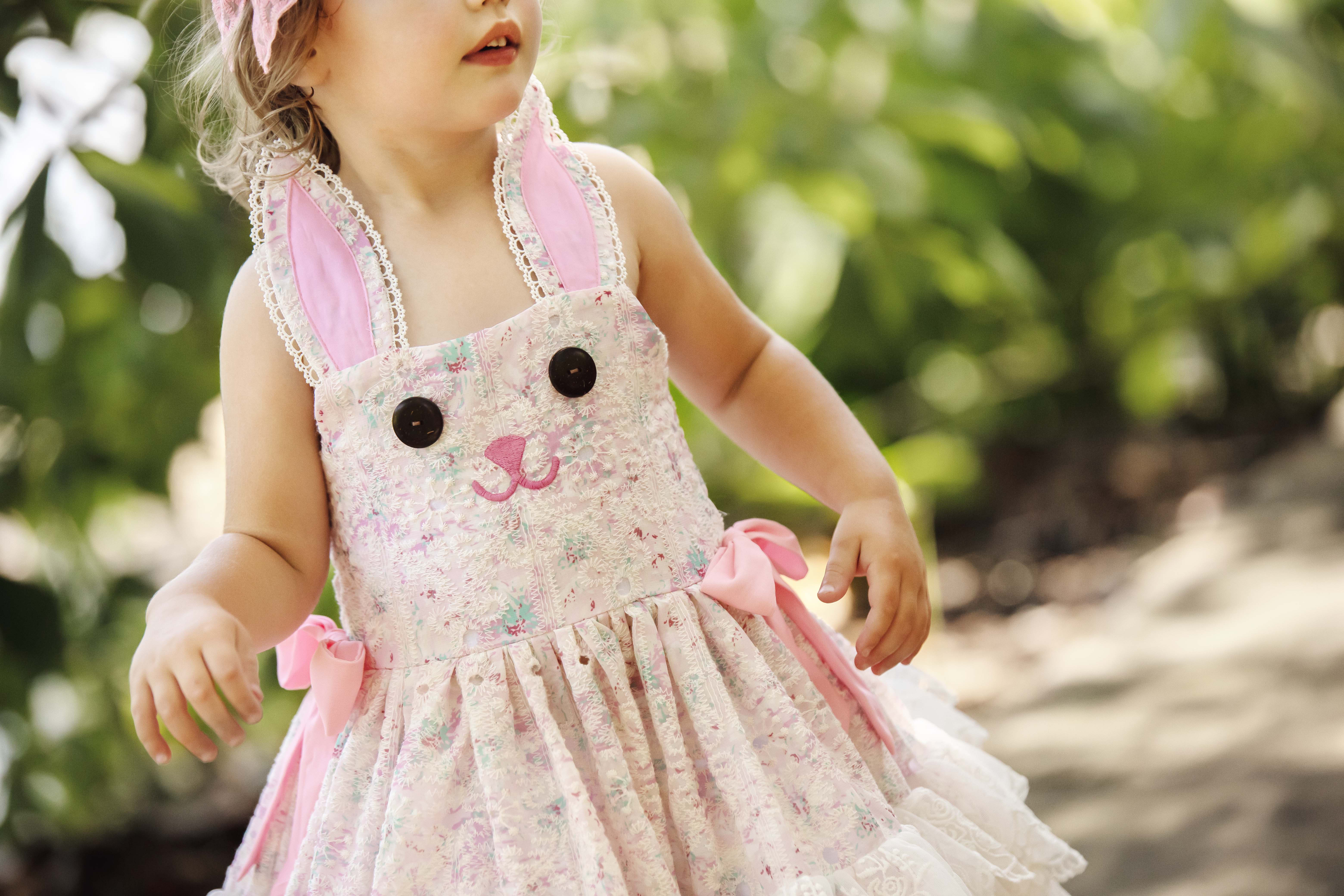 -bunny face on bodice (button eyes and embroidery nose and mouth)