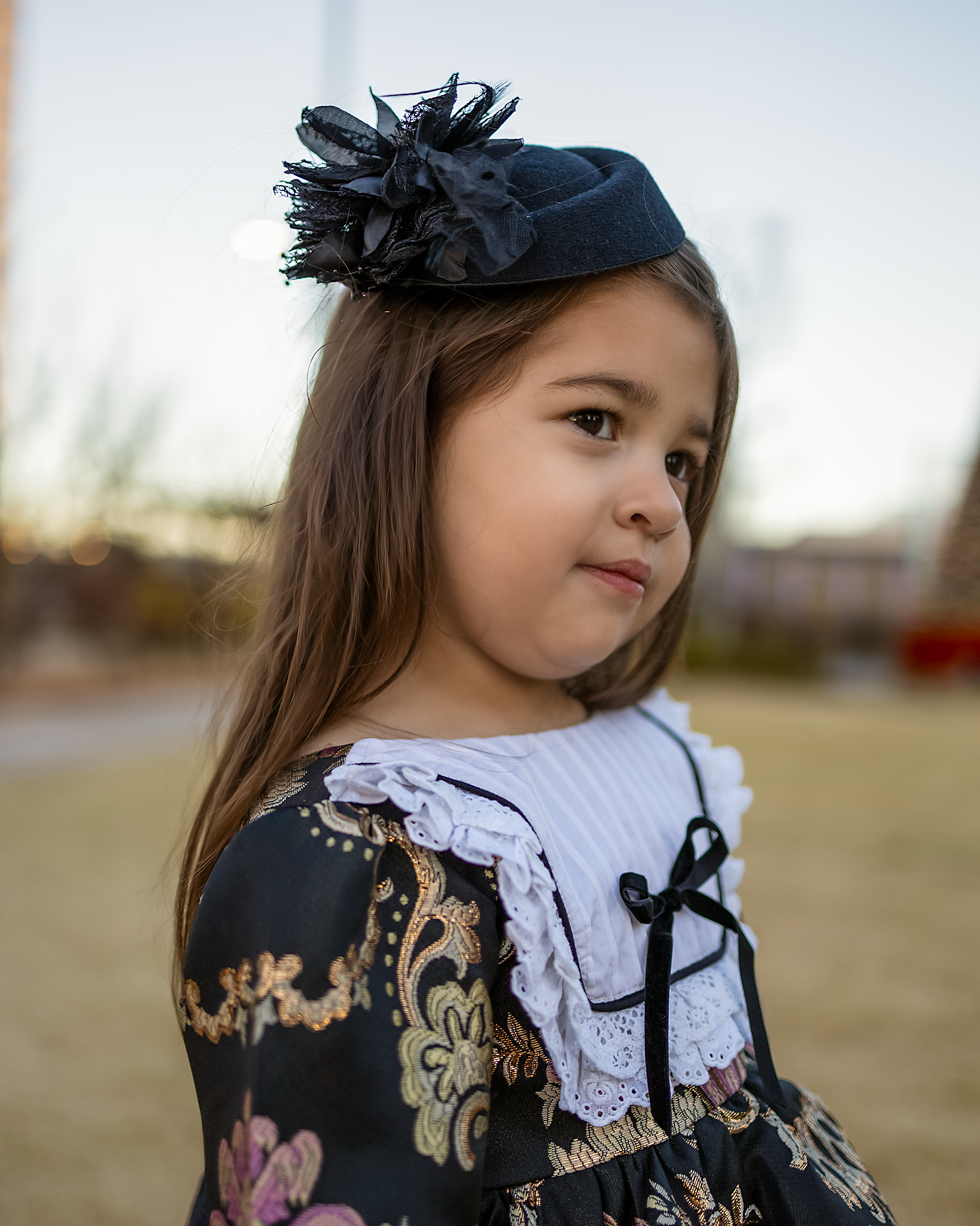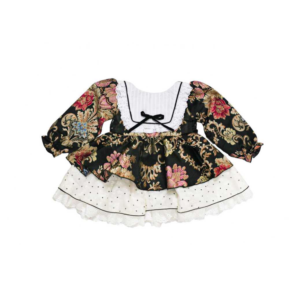 - Ruffle trimmed yoke on bodice for a vintage appeal